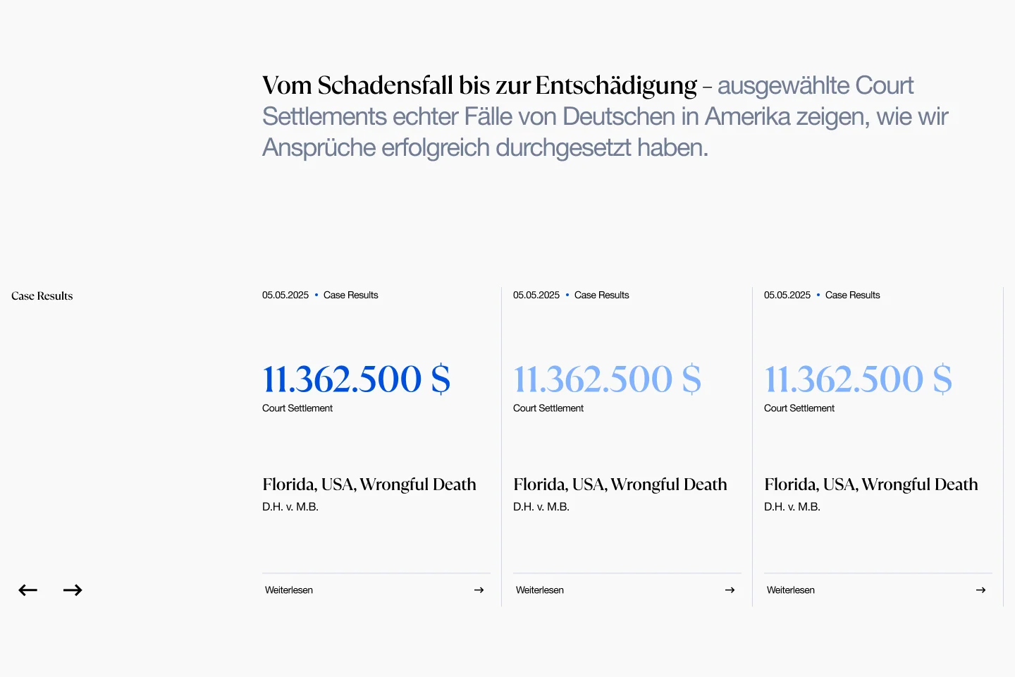 Von Branding & UX zur Umsetzung in Webflow: Eine moderne undeinfach Anlaufstelle für Rechtsschutz, wenn es um Unfälledeutschsprachiger Personen in den USA geht.